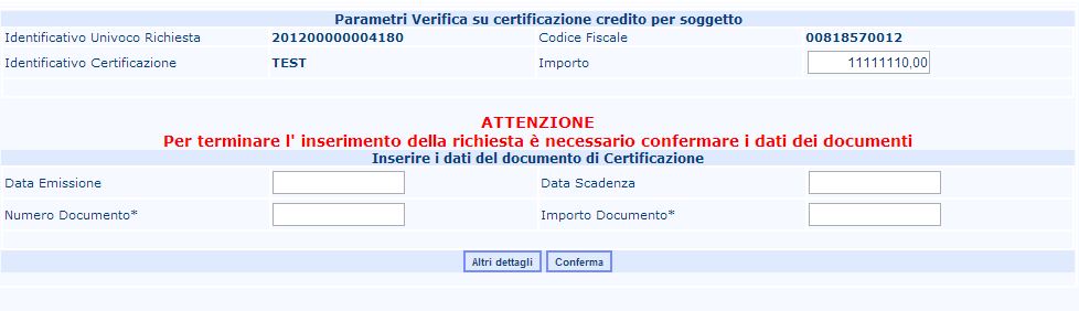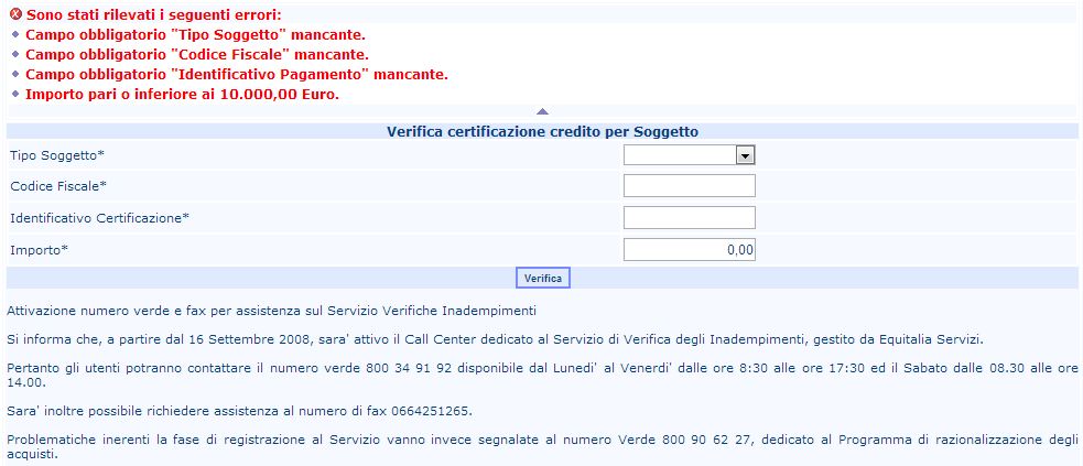 Figura 42: “Verifica Certificazione Credito” – errore campo obbligatorio mancante![]()