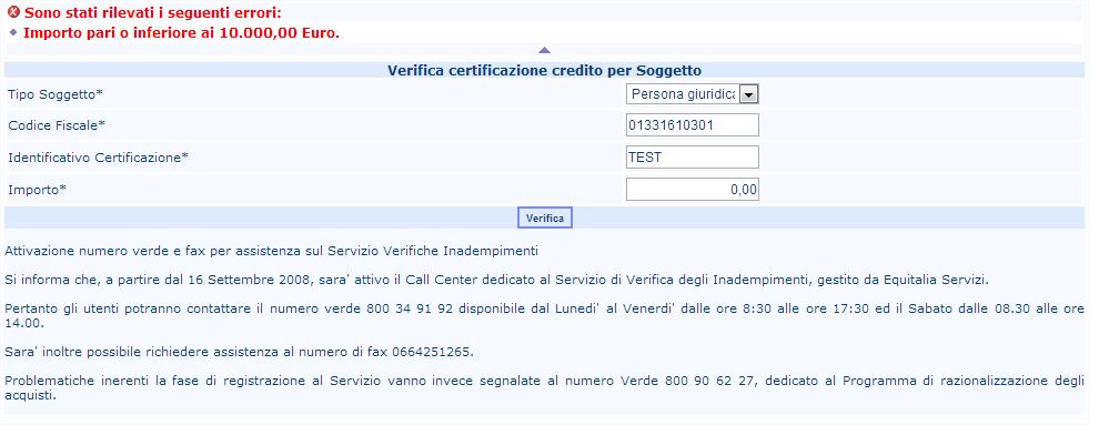 Figura 44: “Verifica Certificazione Credito” – errore importo errato![]()