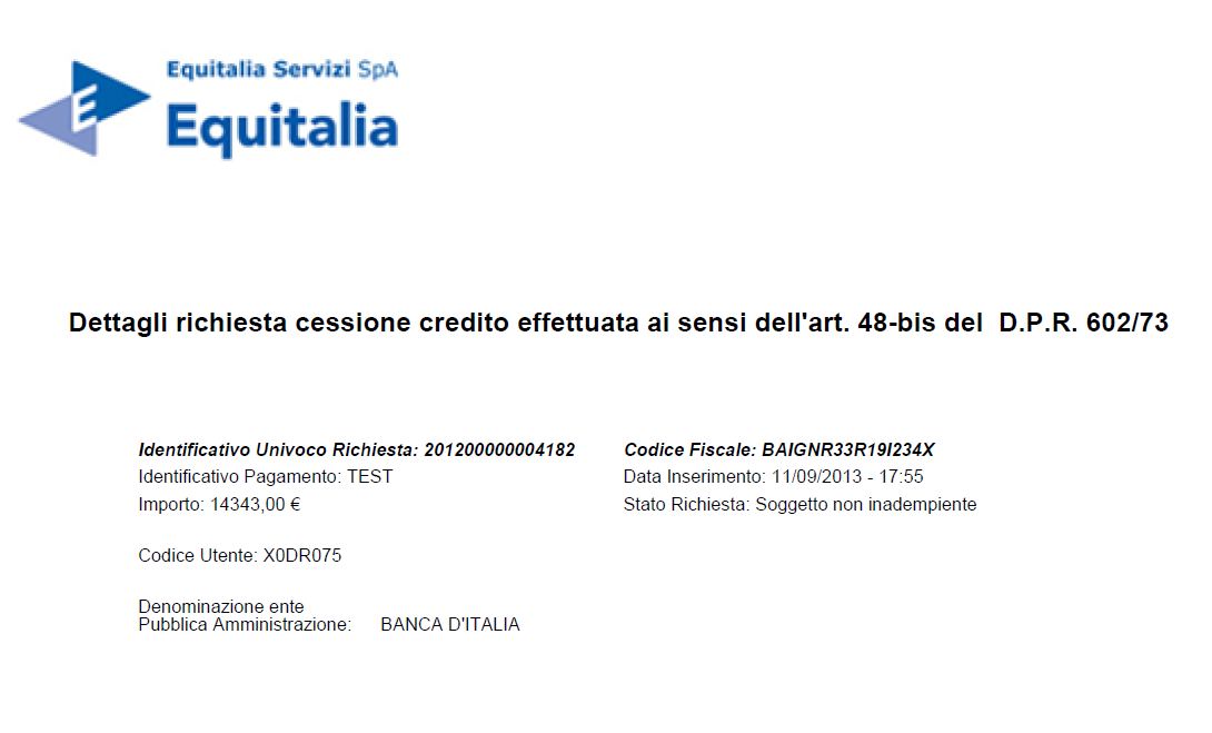 Dettagli richiesta effettuata ai sensi dell'art. 48-bis del D.P.R. 602/73