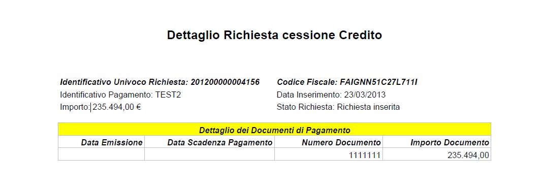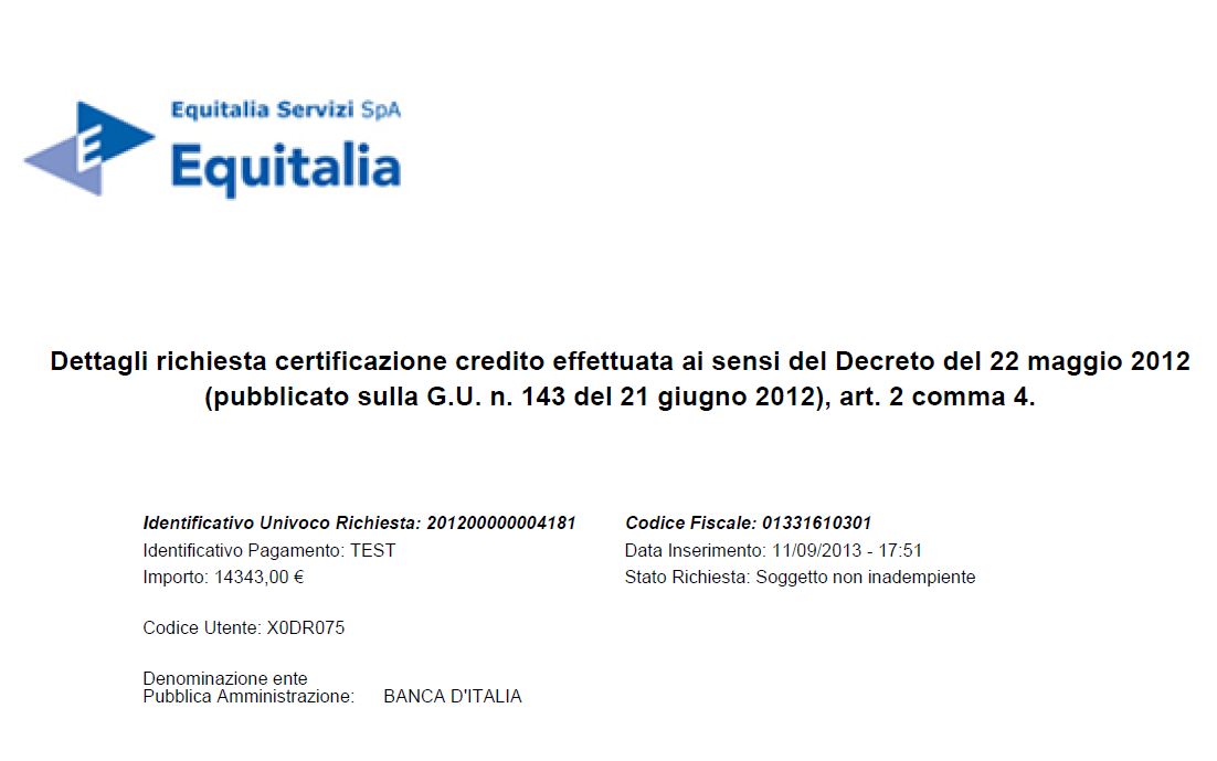 Stato Richiesta: Soggetto non inadempiente |